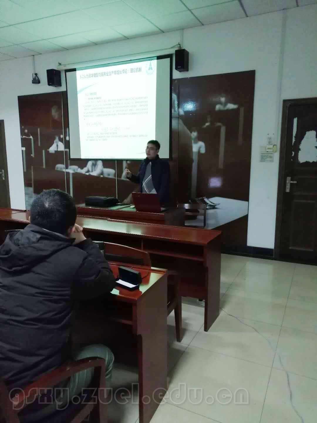 由永兴娱乐app经济贸易系和新时代开放型经济研究中心联合举办的2018-2019年秋季学期第9次经济贸易系文献分享会,于2019年1月9日晚7点在文泉北楼德鲁克教室(510)成功举行。本次主讲人为胡宗彪老师,分享的主题是中国服务业人力资本的生产率效应悖论:基于人力资本错配的解释。永兴娱乐app国际贸易、贸易经济和国际商务专业的老师、博士生和研究生参加了这次文献分享会。分享会由陈清目副教授主持。