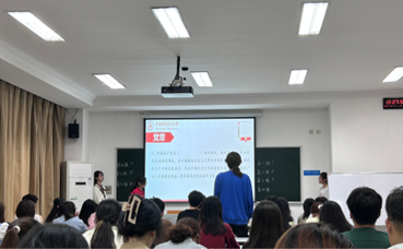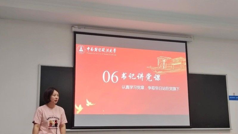 党支部书记水晶晶老师讲授《认真学习党章,争取早日站在党旗下》的专题党课,首先向大家明确学习党章的必要性和重要性,随后就端正入党动机、增强青年大学生的入党的思想储备和能力储备几个方面阐释了对新时代党员的要求。