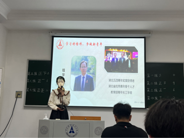 领学人陆宇涵向大家展示了《成国之栋梁,谱时代华章》微党课,她从榜样力量、青年寄语、原创诗歌三个方面讲述了当代青年应该怎样为党和国家发展贡献自己的一份力量,赞颂了为国家事业无私奉献的广大人才,激励青年为现代化建设做出自己的贡献。