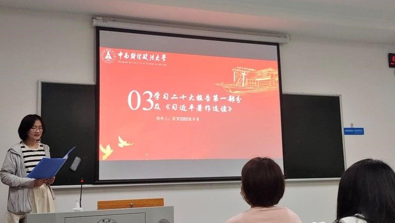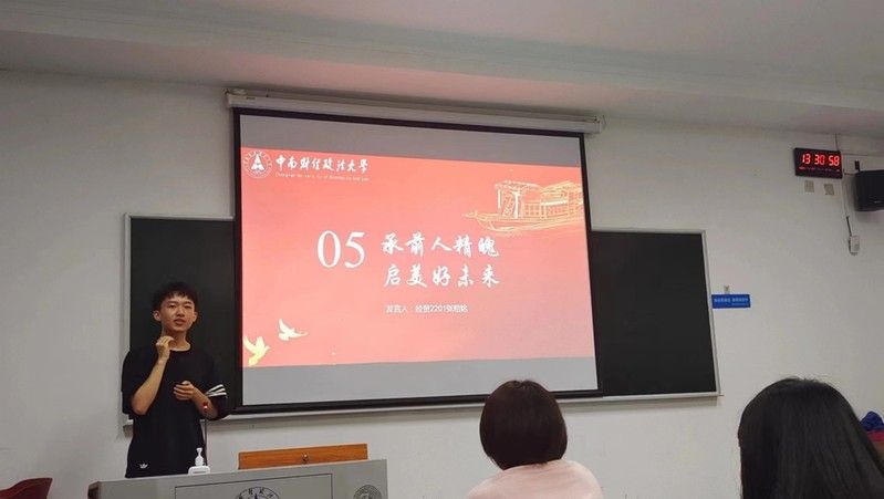 领学人傅婉清以《变与不变的中南大,砥砺奋进的新青年》为题向大家进行了校史讲解,她从“校名变,为国担当不变”“时代变,初心使命不变”“学习好榜样,争做新青年”等方面,将学校为党而生、因党而兴的峥嵘史和中南大学子们的中南情娓娓道来,展示了工商学子的风采。