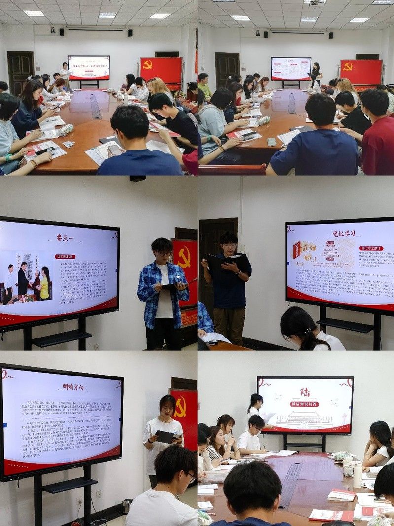 5月27日,党支部第一批预备党员在文泉北307会议室召开主题党日活动。党员同学们在刘馨忆同学的带领下重温入党誓词,拉开了党日活动的序幕。随后,领学人张昕宇围绕党章第十四条至第十七条,详细介绍了党组织巡视制度等党章规定。朱建豪同学从四个要点出发,强调如何严明党的组织纪律。王子谞同学则从《中国共产党纪律处分条例》入手,介绍了第七章、第八章的修订之处,引导支部成员严守党规党纪。接着,吴子晔同学带领大家学习习近平总书记在新时代推动西部大开发座谈会上的重要讲话精神,探讨如何推动西部大开发形成新格局。最后,刘馨忆同学组织开展诚信主题教育,强化支部成员诚信意识。同学们明晰了助学贷款等相关政策,学以致用踊跃参与知识竞答。