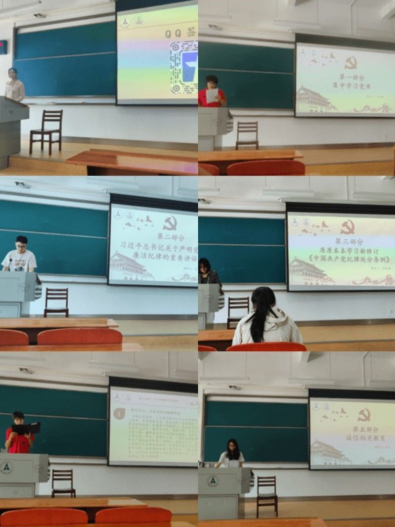 5月30号,第三批入党积极分子在南附楼教室举办五月党日活动。活动伊始,李丹同学带领同学们集中学习习近平总书记在第二十届中央纪委三次全会重要讲话精神,主题为“净化政治环境,建设廉洁文化”。接着,领学人带领支部成员学习《中国共产党纪律处分条例》,通过“党的纪律主要包括哪些?”“党的纪律处分对象是什么?”“党的纪律处分的对象是什么?”三个问题,详细介绍了《条例》的相关知识。随后,领学人带领大家学习教育家精神,强调“深刻领悟教育家精神深邃的历史穿透力、深刻领悟教育家精神深沉的价值引领力、深刻领悟教育家精神深厚的理论创造力、深刻领悟教育家精神深远的实践指引力”。最后,李丹同学向支部成员介绍了诚信的内涵以及诚信品质的重要性,号召大家做诚信的践行者。