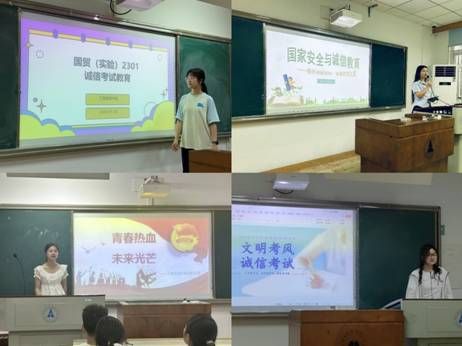 自古驱民在信诚,一言为重百金轻。各班紧密围绕诚信教育的核心,分别从考试诚信、学术诚信、就业诚信等方面深入阐明诚信对个人、社会乃至国家发展的重要意义,鼓励同学们积极分享诚信经历与生活中所遇到的诚信问题,又列举反面案例,通过详细介绍《国家教育考试违规处理办法》中的相关条例,劝告同学们引以为戒,认真备考,诚信参考,交出一份令自己满意的答卷。