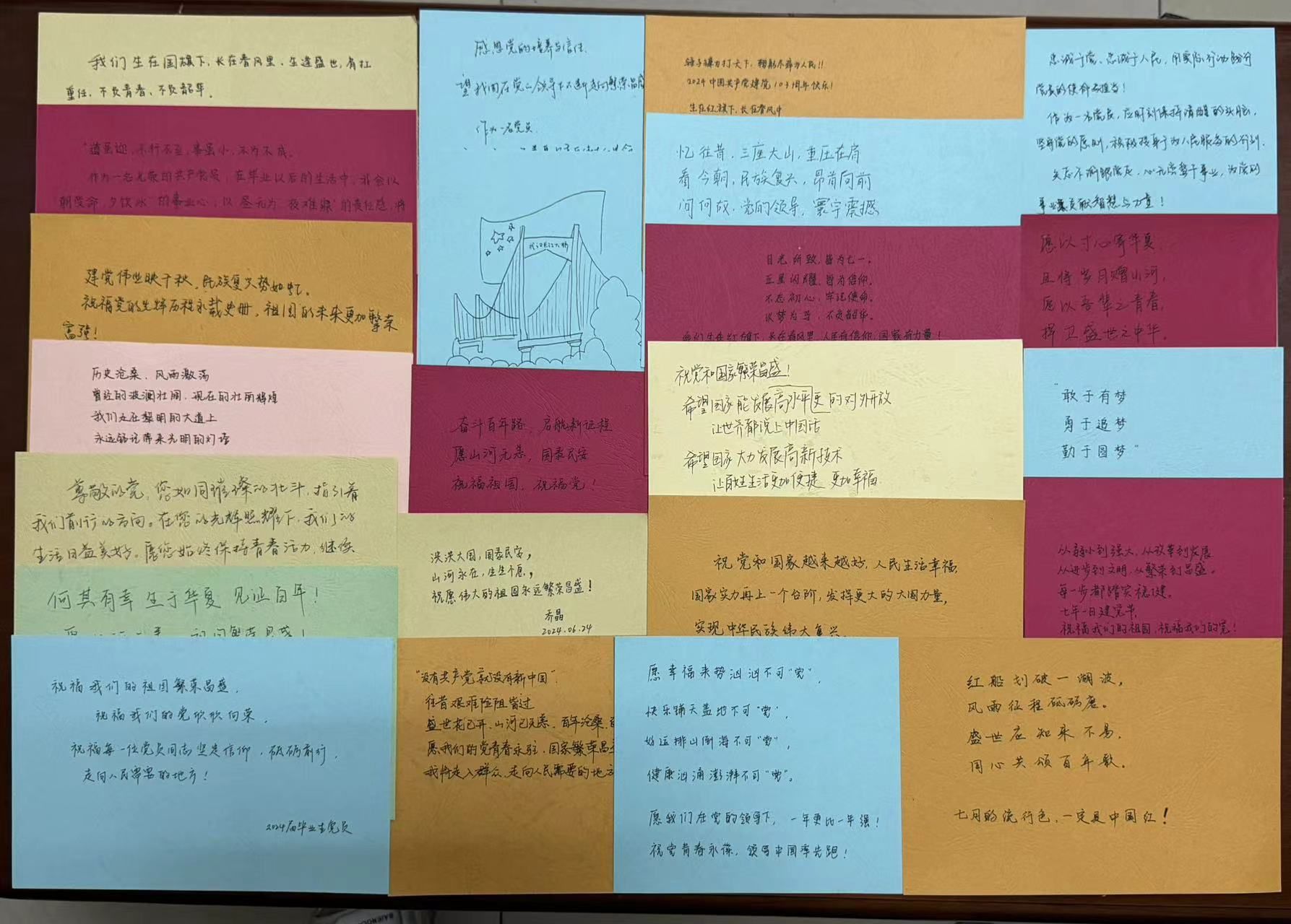 为热烈庆祝中国共产党成立103周年,在“七一”建党节来临之际,全体毕业生党员们也开展了“献礼七一 向党寄语”活动。党员们以满怀敬意的文字,表达了对新时代、新征程的殷切期盼,以及对党和国家未来发展的深切祝福。
