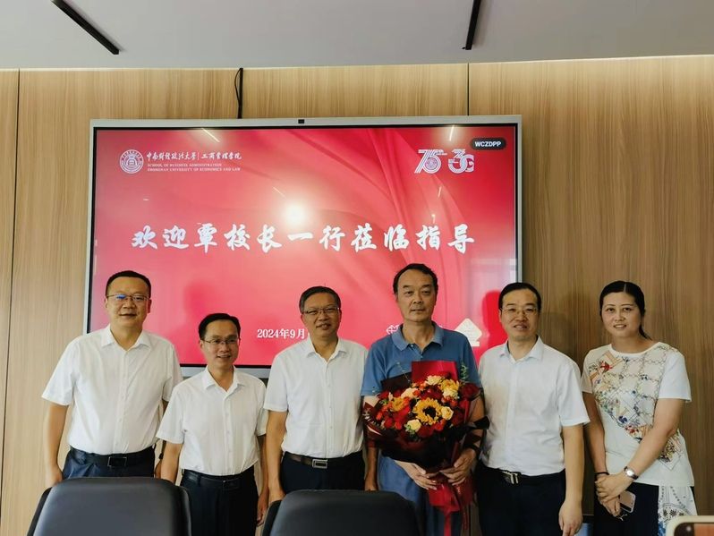 (通讯员杨思琦)2024年9月10日,在第40个教师节来临之际,校党委常委、副校长覃红教授一行代表学校走访慰问了我院丁士军教授,送上节日祝福。丁士军教授是我校二级教授、文澜特聘教授,享受国务院政府特殊津贴。此次同行的还有校党委办公室、学校办公室副主任李晓,人事部副部长潘嫄,校党委办公室、学校办公室信息科主任李盛,我院院长兼MBA教育中心主任吴海涛教授、党委书记余小朋随行参与本次慰问。