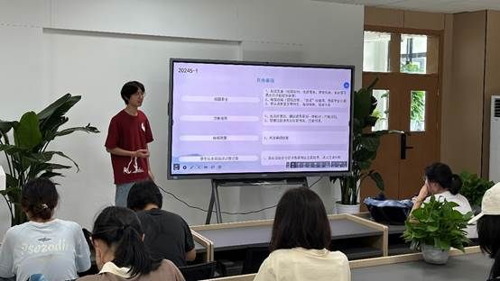 班会第二环节,班长余文欣为同学们梳理了新学期班级工作计划。其结合图文视频以及个人案例,为同学们讲解了新学期同学们在进行家庭经济困难学生认定、本科生评奖评优以及填写2024学年鉴定表时应该注意的要点,并提醒同学们应根据操作手册以及相关要求严格填写。