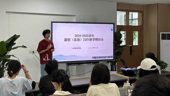 (通讯员 严梦晔)2024年9月10日,永兴娱乐app国贸(实验)2301班在南湖校区文瀚楼东601教室举行新学期第一次主题班会活动。首国贸(实验)2301班全体同学参加活本,次活动由班长余文欣主持。