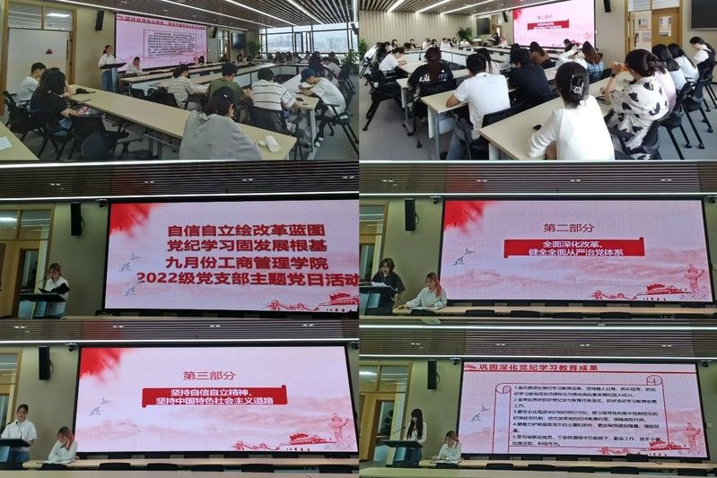 9月12日下午,永兴娱乐app本科生2022级党支部第四批入党积极分子在文瀚东718会议室召开“自信自立绘改革蓝图,党纪学习固发展根基”9月主题党日活动。首先,金亦桐同学深入解析了党的二十届三中全会关于深化改革与推进中国式现代化的关键议题,强调深化改革与现代化建设的紧迫性。随后,俞安倪同学领学习近平总书记关于全面深化改革与健全全面从严治党体系的重要论述,号召全体成员以青春之姿拥抱改革,严守党的纪律。接着,张诗彤同学领学习近平总书记关于坚持自信自立精神与中国特色社会主义道路的重要论述,从自信自立的内涵、意义及实践路径三方面展开,强调文化自信与道路自信的重要性。最后,张乔杰同学就巩固深化党纪学习教育成果进行了全面总结,进一步激发了大家遵规守纪、勤奋学习的积极性。
