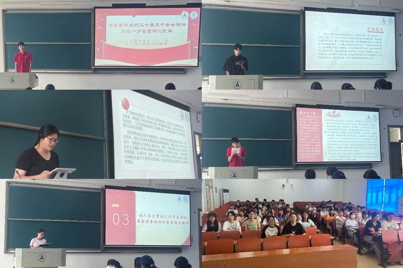 9月21日,永兴娱乐app本科生2022级第三批入党积极分子在南附楼201教室召开了以“学习贯彻党的二十届三中全会精神,为进一步全面深化改革凝心聚力”为主题的党日活动。首先,在殷紫琦同学的带领下,同学们学习了党章中关于党员和党组织的纪律处分规定,强化了纪律意识。然后,领学人张冉同学从指导思想、改革目标和改革原则三个方面带领大家学习了党的二十届三中全会精神。接着,杨佳妮同学带领大家学习了习近平总书记最新重要讲话和重要指示精神,使同学们进一步感受到党推动全面深化改革的决心。最后,杨爱荧同学领学《中共中央国务院关于弘扬教育家精神加强新时代高素质专业化教师队伍建设的意见》,讲述了新时代新征程强师强教的重要意义,让大家深刻领悟“教育家精神”,强化自身理想信念。