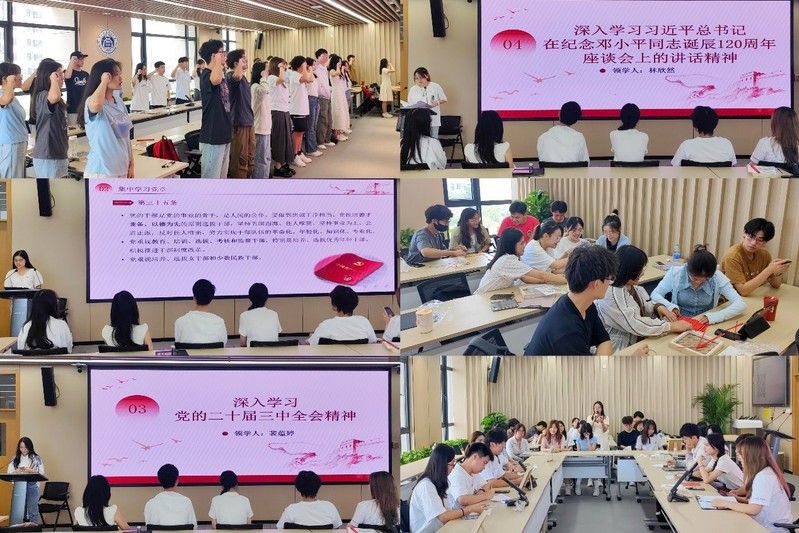 9月19日下午,本科生2022级第一、二批入党积极分子及发展对象于南附楼201教室开展主题党日活动。活动伊始,西尔买买提艾力·吐尔洪同学带领全体成员集中学习《中国共产党章程》,强调了遵守党纪的重要性。第二项,薛曾同学带领大家研读《中共中央关于进一步全面深化改革、推进中国式现代化的决定》,指出改革是推动社会进步和实现中国式现代化的关键,我们应该深入学习贯彻党的二十届三中全会精神,提高理论素养和政策执行力。接下来,葛润恬同学带领大家学习习近平总书记最新重要讲话和重要指示精神,指出要以这次学习为契机,进一步增强“四个意识”、坚定“四个自信”、做到“两个维护”。最后,陈沐枫同学带领大家对《中共中央国务院关于弘扬教育家精神加强新时代高素质专业化教师队伍建设的意见》进行了专题学习,让支部成员认识到教育是国家发展和社会进步的基石,增强了同学们作为未来社会建设者的责任感和使命感。
