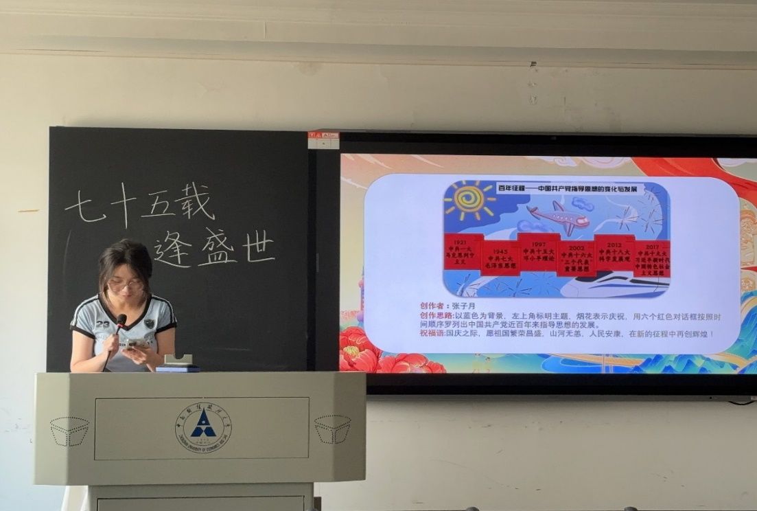 活动伊始,同学们一起追忆学院与祖国共成长的历程,观看红色主题教育短片。大家从视频中感受到了新中国成立75年来,中国发生了翻天覆地的变化。同时,同学们也了解到永兴娱乐app的历史沿革,是一部波澜壮阔的奋斗史。自其诞生之初,便承载着培育英才、服务社会的崇高使命。教育是立国之本,学院七十五年的发展历程,正是对这句话的生动诠释。看完视频,在座的每一位同学都眼神坚定,主持人李佳欣也发出倡议,希望未来同学们都能为社会主义事业的发展贡献力量。