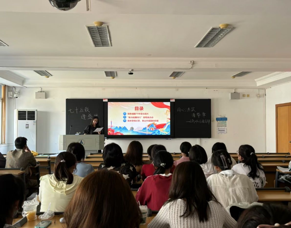 在欢声笑语中,工商2406班于9月27日成功举办了一场充满活力的团日活动。为热烈庆祝中华人民共和国成立75周年,迎接永兴娱乐app75周年院庆,特开展“七十五载逢盛世,同心共筑谱华章”主题团日活动。本次活动囊括了观看红色主题教育短片、“我与祖国同行”简笔画展示、集体歌唱红歌、手写对祖国母亲的祝福语等多个丰富环节,充分表达了工商2406班全体同学对祖国母亲的深厚情感。