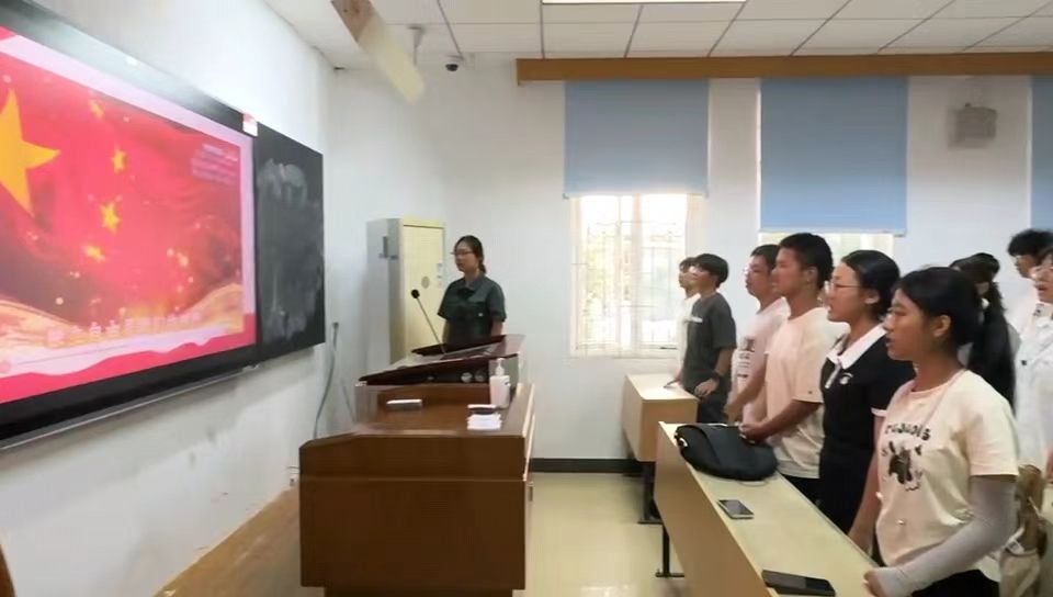 同学们的歌声回荡在教室上方,包含着对祖国母亲的热爱与祝福