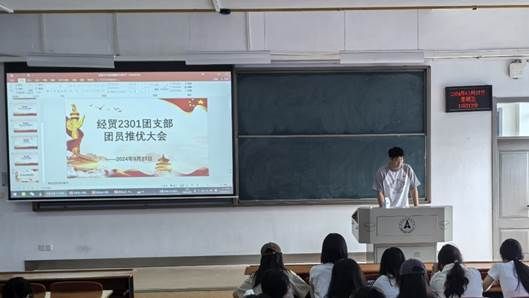 (通讯员 袁大锟)沐党荣光,心随党向。推荐优秀团员作为党的培养对象和发展对象,是团支部的重要工作,也是落实党建带动团建的重要工作。为了落实学院团委的要求,选拔出一批理想信念坚定、表现优异的青年学子,为党的事业注入新的活力,经贸2301团支部于2024年9月27日在南附202教室召开“推优入党”团员大会。本次会议由经贸2301班团支委组织,经贸2301班全体同学参与。团支书黎思峻主持。