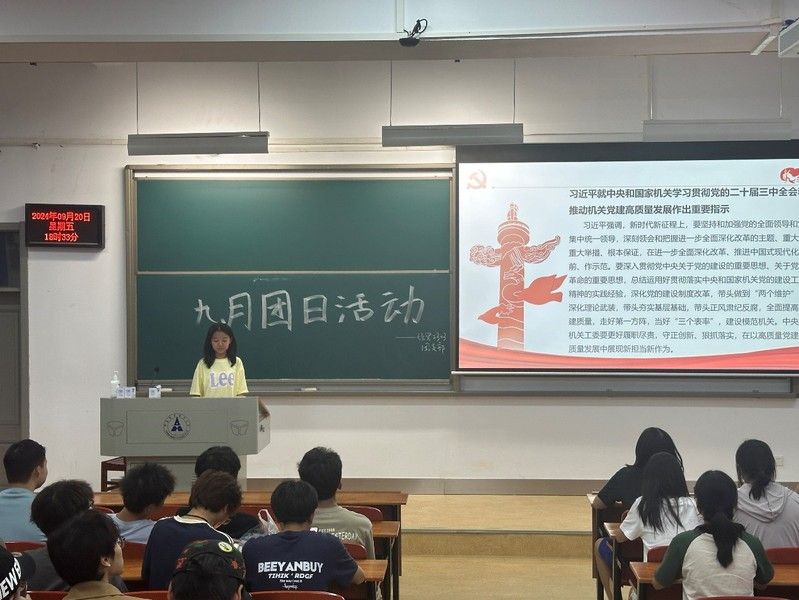 活动在庄严的国歌声中拉开序幕,全体成员肃立,齐唱国歌,展现了青年学子对祖国的无限热爱与崇高敬意。随后,第一组成员为大家分享了有关党的二十届三中全会的学习心得。通过学习党的二十届三中全会精神,大家更加坚定了理想信念,明确了工作方向,增强了责任感和使命感。在今后的工作中,将努力为实现中华民族伟大复兴的中国梦贡献自己的力量。