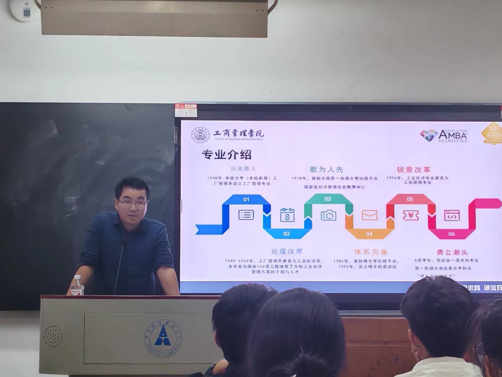 会议伊始,吕飞老师简洁精当地向在座新生介绍了学院工商管理专业的历史底蕴、机构设置、学科建设。他指出,我校的工商管理学作为A类学科、国家级一流本科专业,致力于搭建全层次人才培养平台,具有突出优势和光明前景。