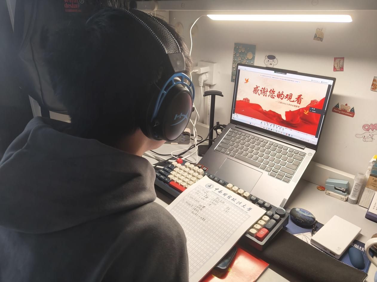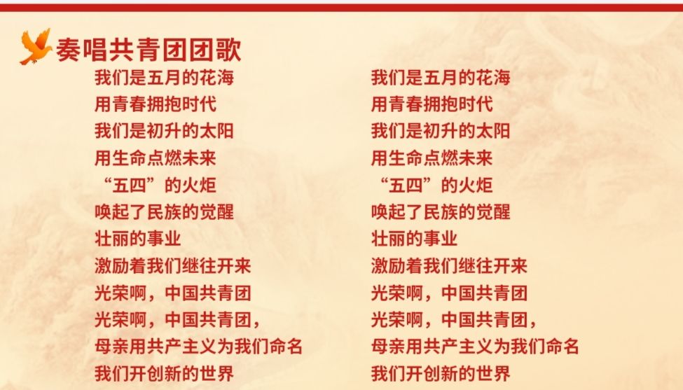 下午三点,同学们准时进入线上会议。在开场环节奏唱共青团团歌的洪亮歌声中,同学们起立共同歌唱,主题班会正式开始。