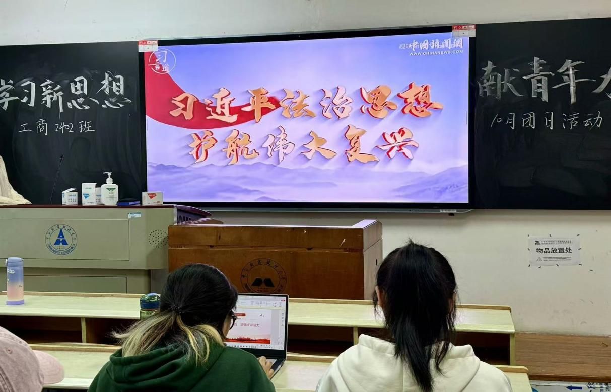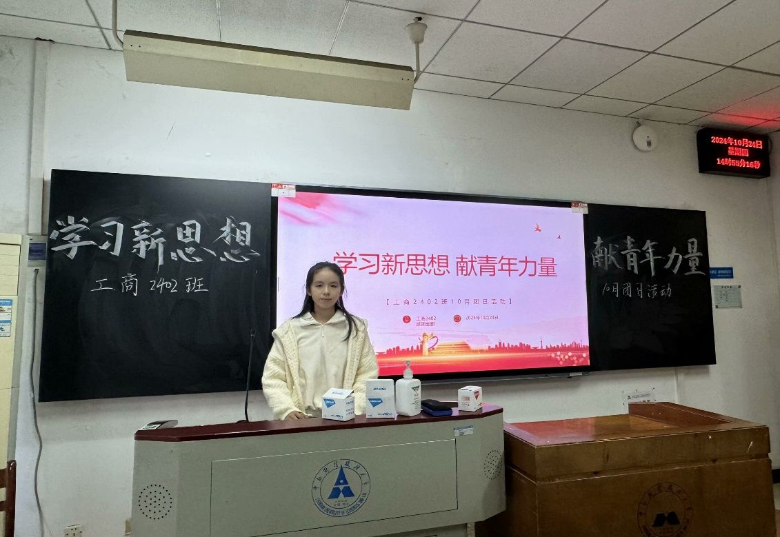(通讯员 许一诺 刘雅欣 )砥砺奋发,不负韶华。为进一步增强同学们的爱国情怀,传承中华传统美德,提高法治意识,10月24日下午3点,永兴娱乐app工商2402班全体同学齐聚首义校区文泽楼205教室,共同开展了 “学习新思想、献青年力量”为主题的十月团日活动,高若茗同学担任本次会议的主持人。
