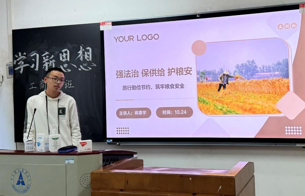 蒋泰宇同学紧扣“强法治,保供给,护粮安。”的主题,巧妙地从粮食安全与个人行动的双重视角切入,深情分享了其采访食堂工作人员的宝贵经历。通过生动的现实描绘,他深刻剖析了个人行为与粮食之间的紧密联系,进而凸显出粮食安全对于捍卫国家整体安全的深远意义。蒋泰宇同学呼吁同学们要珍惜每一粒粮食,以实际行动为守护国家粮食安全贡献自己的力量,共同绘制粮食安全的美好蓝图。