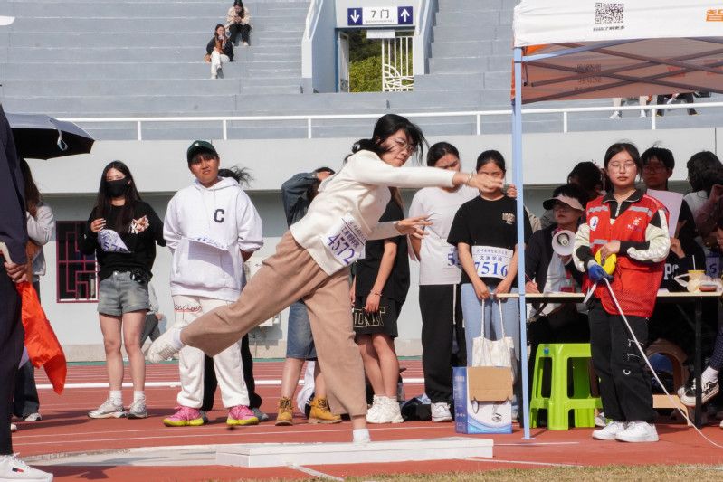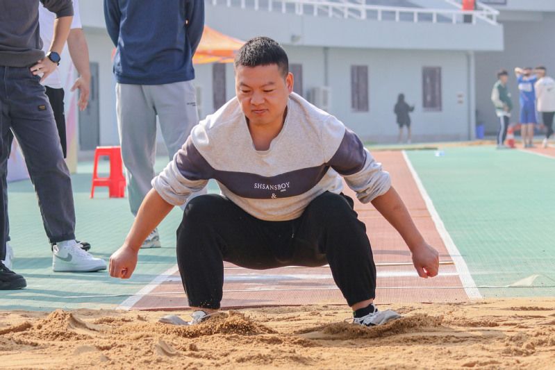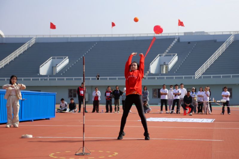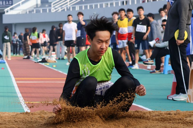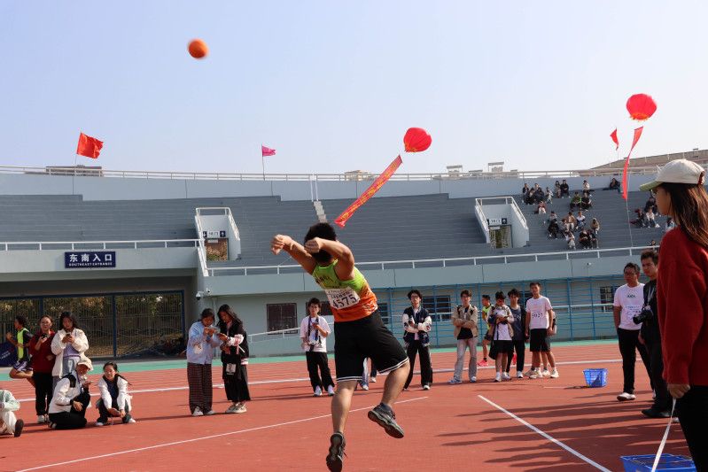 手握重球,眼神坚毅,胸有成竹。蹲下蓄力,起身一掷,姿态从容。承载着运动员的汗水与坚持,实心球在空中画出优美的弧线,冲破了场上的喧嚣。陈宗琦勇夺银牌,创造出属于自己的辉煌,更为学院再添荣光。