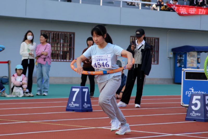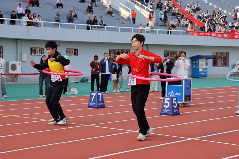 阳光洒下,呼啦圈上的光泽与青春的活力交相辉映。周围的加油声此起彼伏,选手似被注入无穷力量,稳扎稳打,一步步冲向终点。其中董幽兰和高欣欣同学斩获第一第二,为学院赢得荣誉。