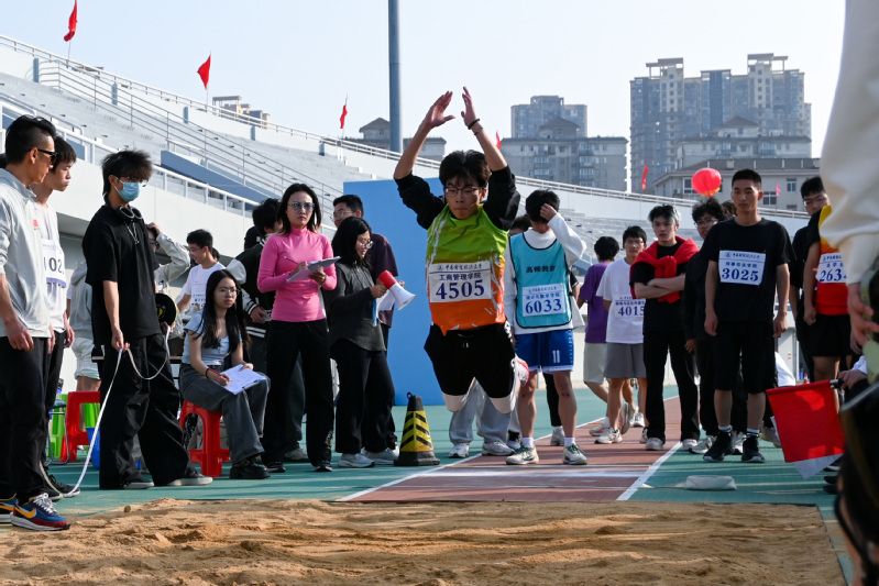 我院健儿神采奕奕,英姿勃发。黄土飞扬,是对他们奋力的见证;赞叹声声,是对他们实力的叹服。温家庆在第二跳失误后扳回一城,以两米八一的好成绩获得第四名。南政奕越战越勇,以两米七四的成绩取得第七名。