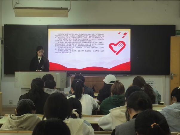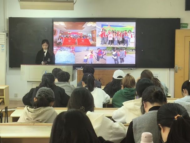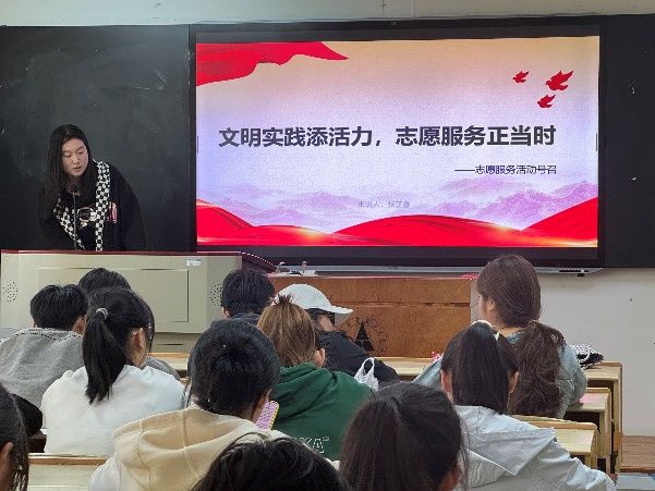 “以志愿为笔,蘸爱心之墨,书写实践的华章。”实践与志愿,一个是自我成长的阶梯,一个是关爱他人的桥梁。它们共同构成了生活中最美丽的风景,让我们的世界变得更加绚丽多彩。张芷睿同学为我们介绍志愿服务内涵、精神、范围以及功能,并带领同学们观看以奋斗为主题的励志视频,激励同学们不断突破自我藩篱,挑战极限,拥抱未来;鼓舞同学们投身于实践的洪流,用行动诠释着人间的真情,用爱心编织着美好的世界。