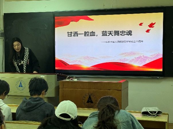 “甘洒一腔血,蓝天舞忠魂。”广袤无垠的苍穹之上,有一群英勇无畏的战士,他们驾驭着钢铁雄鹰,捍卫着祖国的蓝天守护着国家的领空安全,他们就是伟大的空军。陈恩之同学带领同学们共同了解空军建军节的节日来历与波澜壮阔的空军史,向伟大的空军致敬。